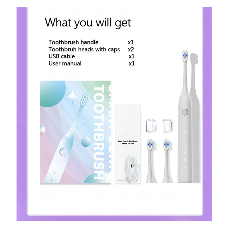 Ipx7 వాటర్ప్రూఫ్ సోనిక్ ఎలక్ట్రిక్ టూత్ బ్రష్ యొక్క ఉత్పత్తి ప్యాకేజీ